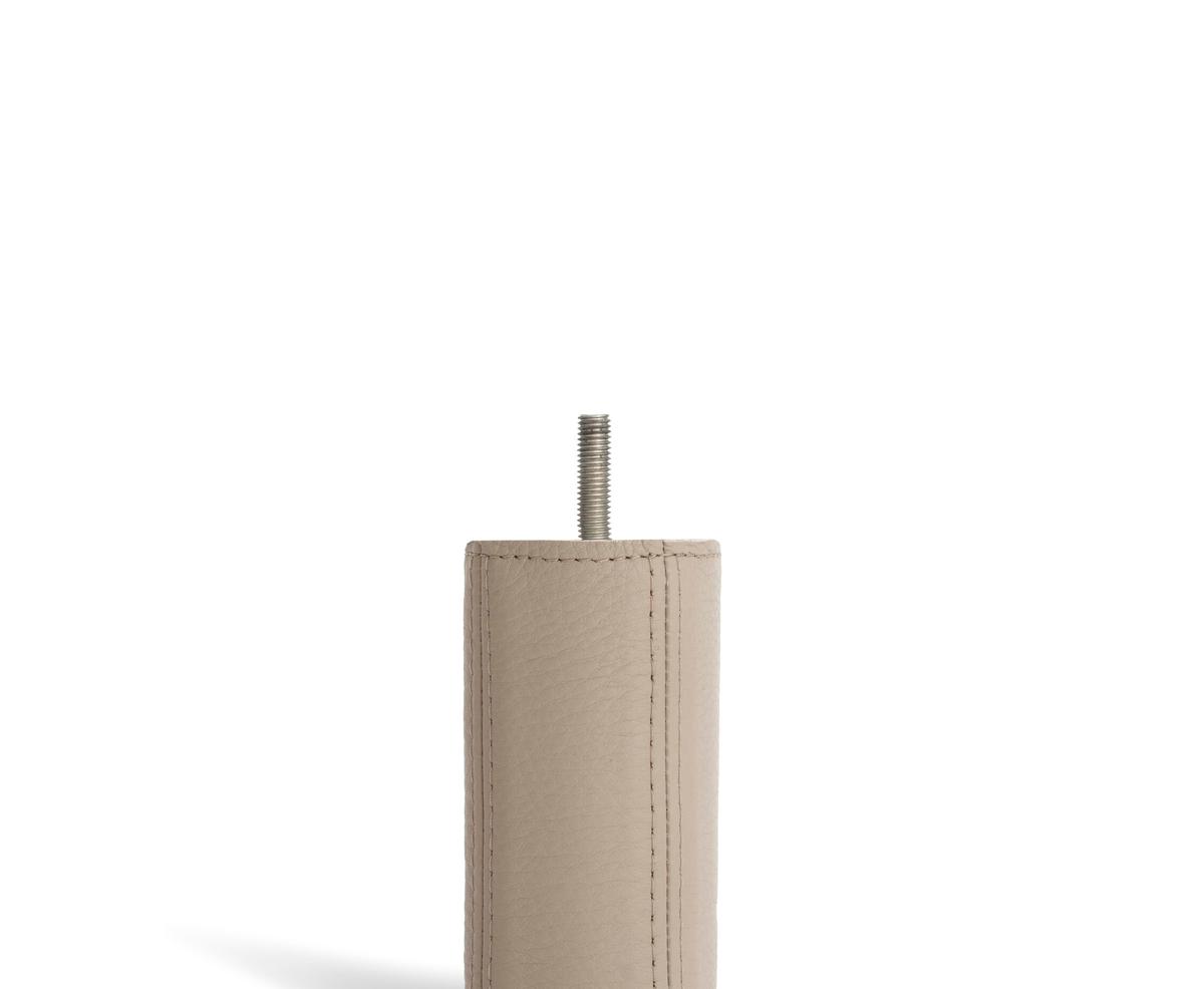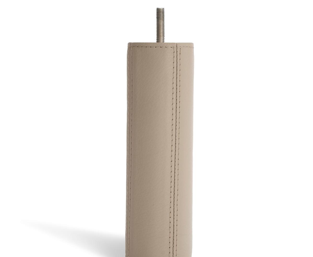 La estructura interior de la cama DUX le permite seleccionar el estilo, la altura y el color de las patas que desee, y fijarlas a la estructura atornillándolas. Las patas redondas miden 10 cm de diámetro y están hechas con madera sólida.