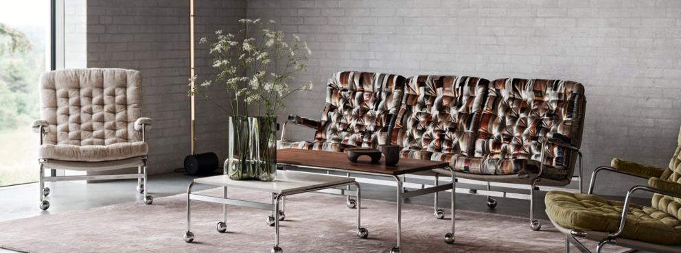 Llamada así por el año de su debut, la Karin 73 fue la primera evolución del sillón Karin original diseñado por Bruno Mathsson. Ahora llevamos esta colección aún más lejos con un sofá de 3 plazas que incluye el mismo diseño clásico y elegante. Los cómodos cojines rellenos están colocados sobre una estructura cromada y reforzada. Además de sofás y la silla original, la colección Karin 73 también incluye un taburete y mesas disponibles en varios tamaños.