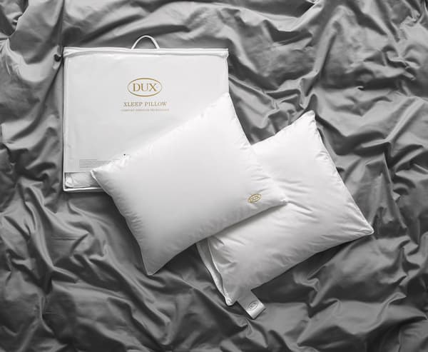 DUX Xleep es otra innovación de DUX. El sistema de muelles permite que la almohada de plumón conserve su forma y elasticidad originales año tras año, y se sienta muy fresca y cómoda.